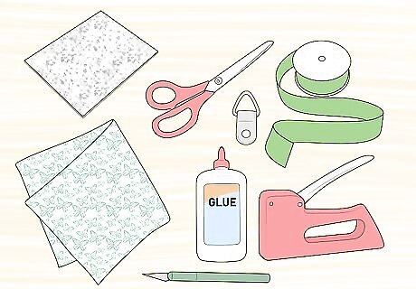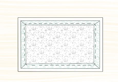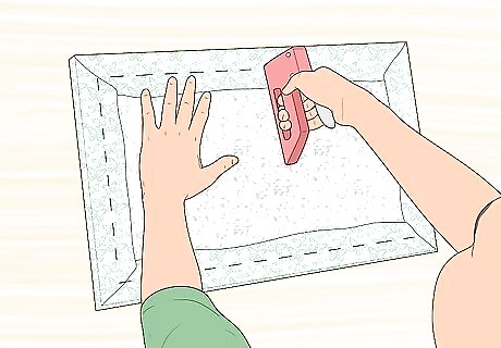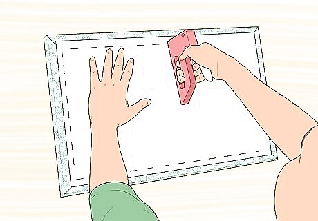 Gently pull the fabric up and over the edges and staple it to the back of the tile. It is best to staple within two inches of the edge.
