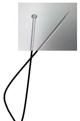 Make a Wire from a Plastic Bottle. Melt one end into a ball bigger than the pinhole made in the previous step. Use the fire of a lighter to make the ball. Sharpen the other end with a pair of scissors. (An example of the nylon material) In case of a PET is sparkling, and becomes black.