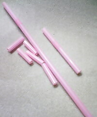String the petals together on the wire with straws in between to separate them, as shown. You can slit the sides of the straws to make stringing easier.
