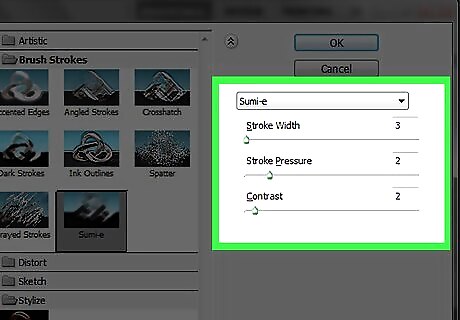 Adjust the brush strokes. Set "Stroke Width" to 3; "Stroke Pressure" to 2; and "Contrast" to 2.