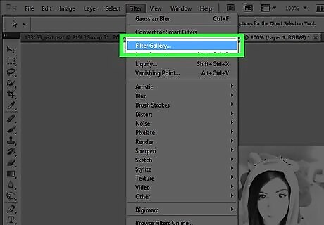 Click on Filter in the menu bar, then click on Filter Gallery….