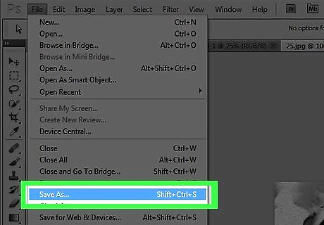 Save your image. Do so by clicking on File in the menu bar and Save As…. Name your file and click on Save.
