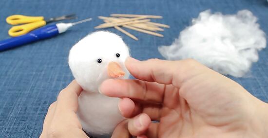 Flatten the bottom of the bigger ball so that your snowman stands upright. Position your snowman so that he is standing upright. Holding it by the body, gently press the bigger ball against your work surface until the bottom flattens slightly. Once your snowman can stand upright without falling over, you are ready for the next step.