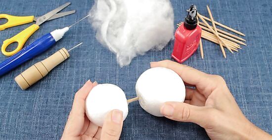 Get two different-sized Styrofoam foam balls and flatten them slightly. The size of the balls does not matter; you just want one to be a little bit smaller than the other to make the head and body. Press each ball against your work surface to flatten them slightly. You don't need to flatten them by a lot—just enough so that they can't roll around.