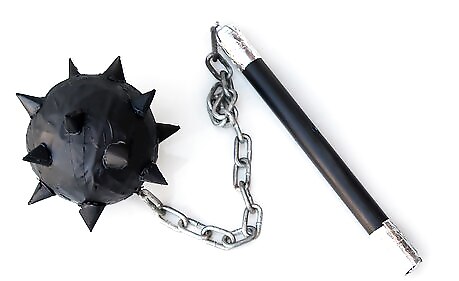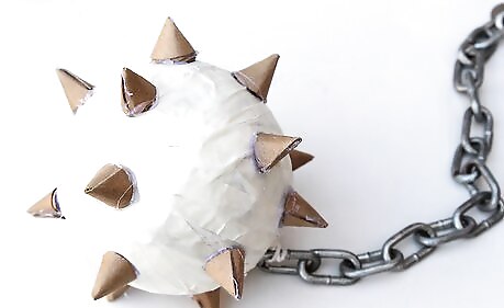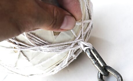 Wrap your string around the mace ball. Wrap it in different spots and wrap at least 4 times. With a varied wrap like this, the ball will not come off the string. Tie a knot after each wrap.