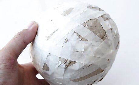 Tape the whole ball of the mace. Complete the shape and size of the ball head by taping it over completely. Don't be stingy with the tape; the more tape you use, the stronger it will be. Make it as reasonably smooth as you can and shape it as much like a ball as you can. You will be painting this surface, so the smoother the better.