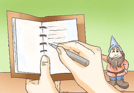 Draw a basic plan on paper of how you envisage transforming the gnome into your husband. Take the characteristics and items that you've decided upon and plan where they'll be placed on the gnome. This exercise will help you to work out what needs to be found and purchased and what things you'll need to create from scratch. Don't spend too long on this step––a simple sketch of a stick figure gnome with arrows and instructions or pointers is sufficient. You may work out at this stage that the gnome needs a little paintwork as well as adding clothes or accessories. Factor this into the process of making over the gnome.