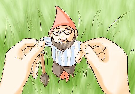 Place the husband-like gnome in your garden or on your lawn. Find a strategic place in your garden such as by a fountain or next to a favorite plant. You could place it somewhere that he is bound to come across it regularly or somewhere that he is only likely to discover on the weekend when gardening or mowing the lawn; it's up to you and when you want the impact to occur. Don’t tell your husband that you’ve created his alter-ego to protect the garden. Instead, wait to see how long it takes for him to notice. When he does, provided he finds it funny, own up and have a good laugh together about the whole husband-like gnome thing. In fact, get a photo of the two of them together and post it online. Then wait for your turn as he plots to make a garden gnome that looks just like his wife… If your husband doesn't have a sense of humor about it, tell him any resemblance to himself is a mere coincidence and that he is just flattering himself to think you'd take the time to make the gnome look anything like him. If your husband really gets irritable about what you've done, either cause the gnome to disappear quickly or reshape its features completely. If you didn't already know your husband's level of tolerance for garden gnomes, you sure do now.