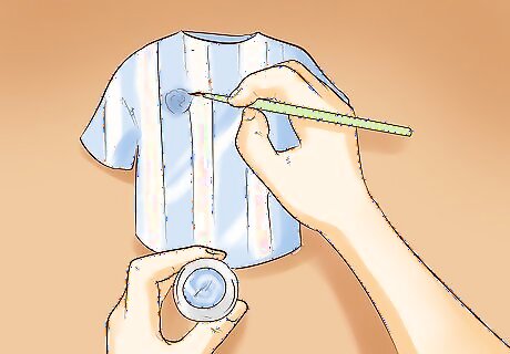 Improvise with clothing or accessories to obtain the desired result. In some cases, you may not be able to find that University of Michigan jersey small enough for your garden gnome, for example. If that’s the case, purchase a small white t-shirt from either the toy or craft store and either freehand draw the logo using fabric pen paint or generate an iron-on transfer using graphics you can find online. Almost anything can be miniaturized with a little creative thinking. Items such as glasses and studs can be created using strong craft wire. Use yarn or special craft string for hair. Colored cotton wool can serve as a beard. Glue on real shoelaces to give the impression of strong work boots. An old beloved shirt can be cut down to size, or even just a logo can be removed from an old piece of clothing and stitched to the gnome's clothing.