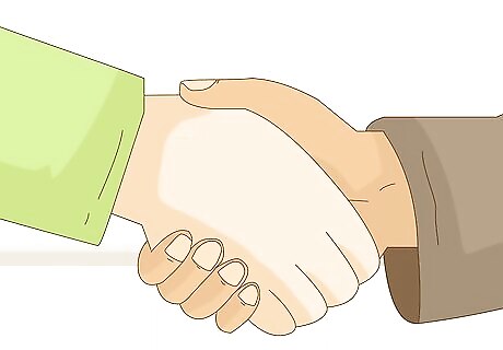 Shake with firmness. When you first meet the interviewer, shake his or her hand firmly. A firm handshake is highly impressive and always leaves a lasting impression. A firm handshake with the interviewer will indicate confidence and will create a good first impression.