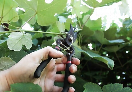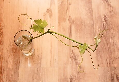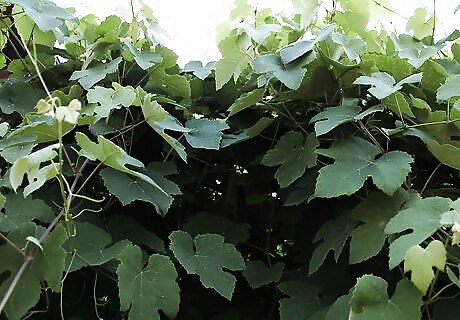 Plant your own grapevines. Instead of hunting around for them, you could just plant your own. You will also get some actual grapes out of this method! Go to a nursery and purchase the grapevines. You want to choose vigorous 1-year-old plants for planting.Plant in early spring, and erect a trellis to train the vines to grow up. Plant the vines in a spot with full sun, about 6 in (15 cm), and water the base of the plants regularly.