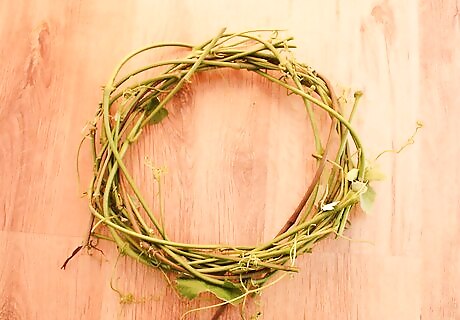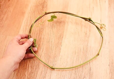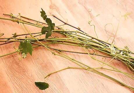 Find grapevines. You can buy the grape vines in some craft or floral shops. However, they also grow in many places in the wild. You can get them from an arbor or even from a neighbor who grows grapes. Grapevines often grow along fences, trellises, and walls. You may also find them in the woods or on a roadside. It’s easiest to find grapevines in the end of August and the earliest days of September, although people find the vines from mid-summer through late fall. You can also buy them for about $30 in flower shops.