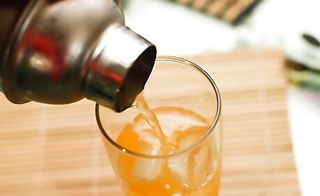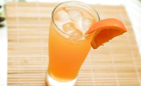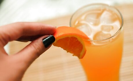 Cut a slice of another orange. Cut a slit in the orange flesh and wedge it on the side of the glass for a garnish.