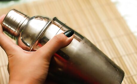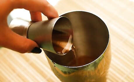 Measure and pour the tequila, vodka, passion fruit liqueur, the juice from the orange, and sugar into the cocktail shaker.