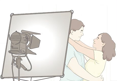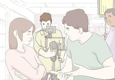 Cast your film. People in your community might work for screen credits in low-budget films. Of course, it would be advantageous to have a well-known name starring in your movie, but learning to play to the strengths of the actors you do have will ensure that you've got a great filmed product. If you need a cop character in your film, call one up and ask if he'd be willing to film a couple of scenes some afternoon. Just make sure that the movie doesn't involve anything illegal while the police officer is there, as this could not end well. If you need a college professor, contact the school. Test the range of your actors. If you know that one of them will have to cry in a sad scene, make sure he or she can do it before you contract for the project. Avoid scheduling conflicts. Make sure your actors can be available on-set when you need them. Be careful of stunts that may injure your actors. A big part of acting is nonverbal communication. Look for actors who can express how they're feeling and make you feel a certain way without having to say anything.