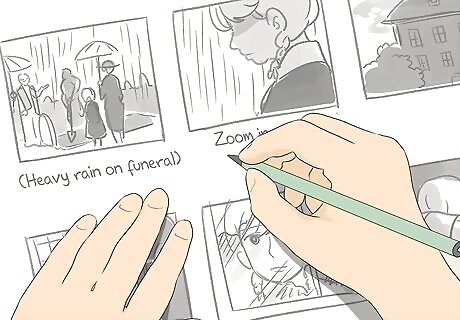 Storyboard your film. A storyboard is a comic-book-like version of the film that you'll create but without the dialog bubbles. It can be done on a large scale, drawing only each major scene or transition, or, if you've got a very visual story, It can also be done at the micro-level, planning every shot and camera angle. This process makes a long film go more smoothly, and will help you anticipate difficult scenes or sequences to film. You can try shooting without storyboarding, but it will not only help you visualize your movie but will also help you explain your vision to the other members of the crew.