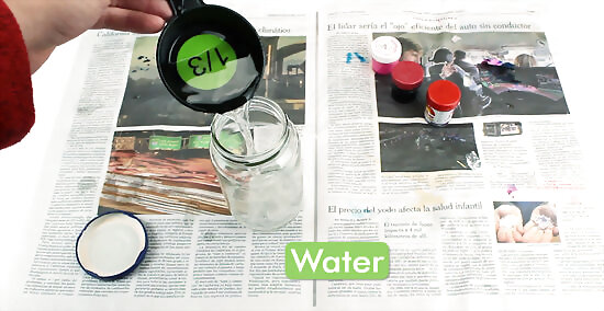 Fill up about one third of the jar with water.