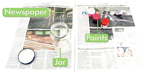 Set up your work space. Place down some newspaper, take the lid off of the jar, and make sure the paint is open.