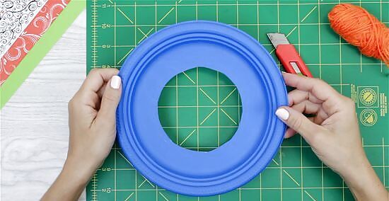 Cut out the center of a paper plate. Use a plain white one or a coloured or patterned paper plate.