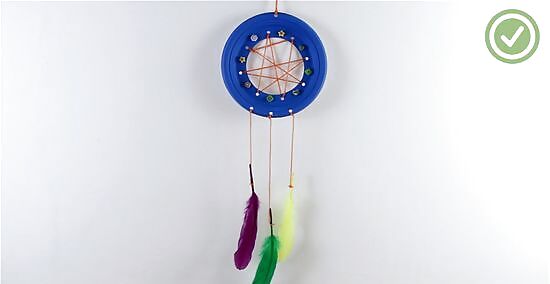 Make a hole on the top of the dream catcher and tie on some string/yarn to suspend your dreams catcher.