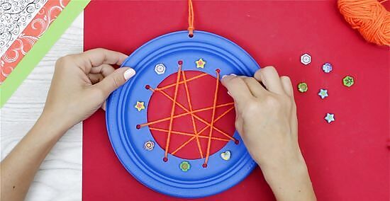 Add additional decorations, if desired. You can go around the circle punching holes on the outer edge and then tie colorful yarn or beads on it.