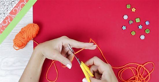 Cut about a 4 foot (1.2 m) length of yarn or string for a mini paper plate or cut a 6 feet (1.8 m) length of yarn or string for a standard sized plate. Use wool, string, rafia, anything at all.
