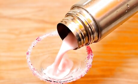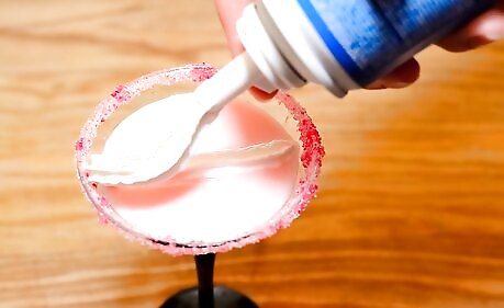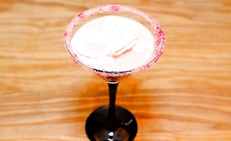 Prepare the glass. Dip your martini glass rim with the same color vodka you are using in the drink. Dip and gently turn the rim in sugar (the same color as your marshmallow peep).