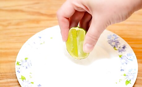 Fill a small saucer with lime juice. Measure about a tablespoon of the lime juice and spread it towards the edges.