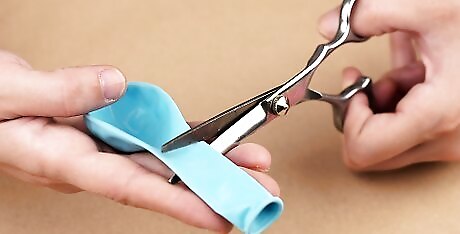 Cut the neck off of a balloon. Using scissors, just snip the end of the balloon right off. There’s no precise place to make the cut. You just want to make sure that the opening will be large enough to fit over the mouth of your jar.