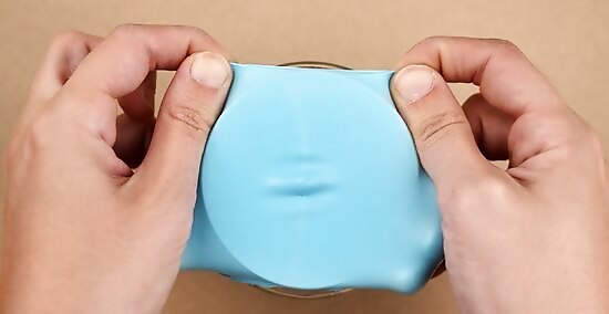 Stretch the balloon over the top of a jar. Use your hands to pull on the opening of the balloon and put it over the mouth of the jar. Pull it down all around so that the balloon is stretched flat over the mouth, with no wrinkles. When the balloon is taut over the mouth of the jar, stretch a rubber band over the rim of the jar to hold the balloon in place. A glass jar is best, but you can also use a metal can. Whether you use a jar or can, the exact size isn't critical. Just make sure that the mouth is not so big that the balloon can't easily stretch over it.