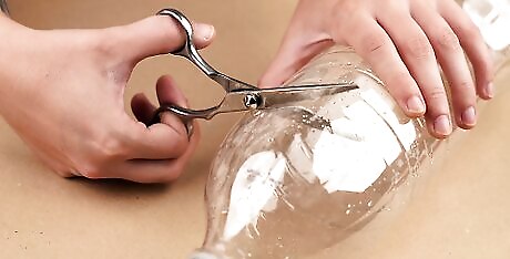 Cut the top off of a plastic bottle. Ordinary two-liter plastic bottles work great. Use one that is empty and clean. Take a pair of scissors and carefully snip the entire top off, down to the point where the sides become straight instead of curved.