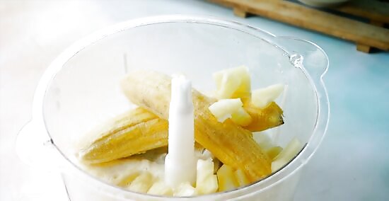 Add the bananas and pineapple chunks. Pulse again to blend the mixture together until it has a smoothie-like texture.