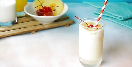 Pour it into two glasses. Since this banana piña colada is almost like a smoothie, you could pour it into two tall glasses. Add a couple of straws to make it easier to drink.