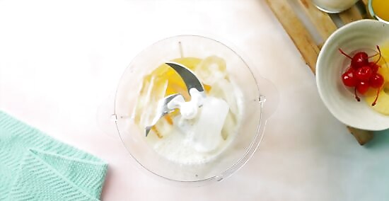 Blend the ice, pineapple juice and coconut milk. Pulse the blender until the mixture is nice and smooth. Keep going until it's rich and creamy.