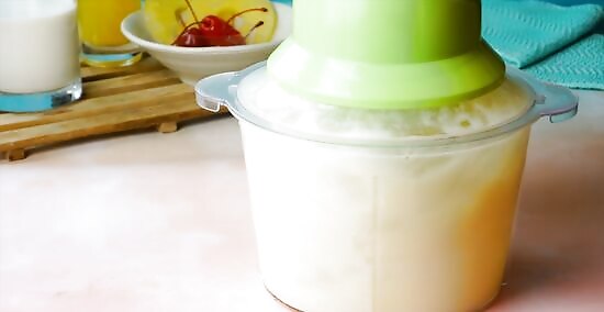 Pour it into two glasses. Use clear glasses so you can appreciate the pretty color of your fruity piña colada.