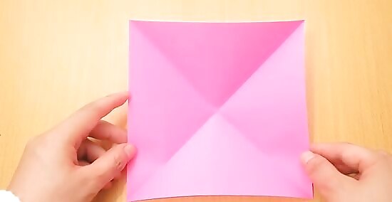 Fold a square piece of paper diagonally both ways. Unfold. (If you don't have a square piece of paper, you can easily make one from a rectangular sheet.)