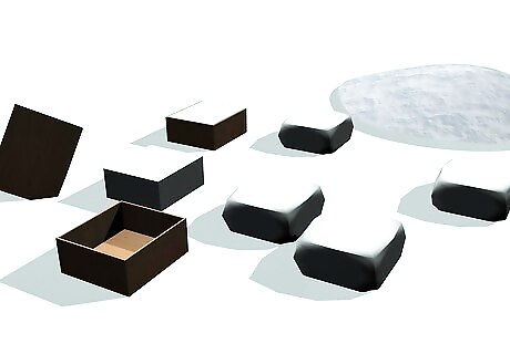 Create bricks by hand or using a form. A form is the easiest method to ensure standard-sized bricks. You can make your own form by nailing together 4 planks of wood to make a rectangle brick. Pack the snow inside and tap out of the form for use. The bricks should gradually get less and less thick as you build upward. The base bricks should be the thickest as they are supporting the most weight.