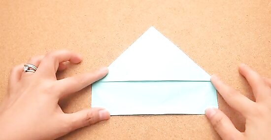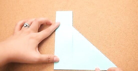 Fold the rectangular part of the paper over so it is on top of the triangular part of the paper.