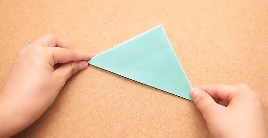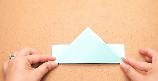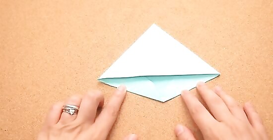 Turn the paper over and fold the highest point of the triangle down to the bottom corner of the triangle. This essentially halves the size of the triangle and creates a "pocket" which will be used in the next step.