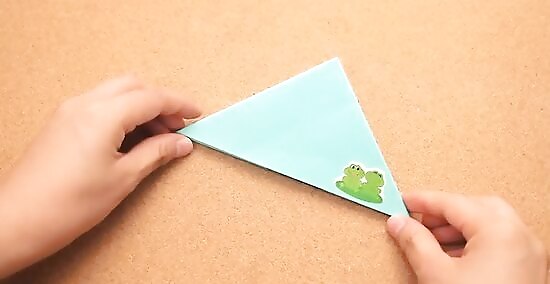 Fold the stand. Fold up the right and left bottom corners of rectangle at an angle. Insert the corners into the pocket formed by the folded triangle. This will form a triangular support stand for the mountain.