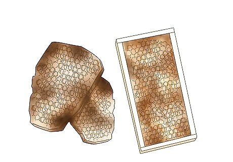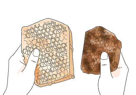 Collect as many old honeycombs as you can. If you keep bees yourself, you can harvest honeycombs from your own beehives. If you don’t keep bees, then ask people who do if you can have or buy some of their leftover honeycombs. Honeycombs melt down, so it may seem like you have a ton of honeycombs, but they will produce a much smaller volume of wax once you melt them.