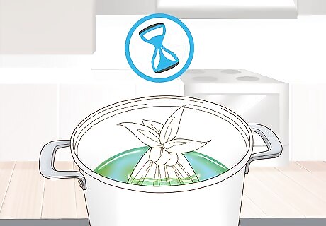 Allow the wax to melt in the pot of boiling water. Leave the cheesecloth in the boiling water for about 10 to 20 minutes so that the honeycombs can melt. Use the tongs to press the cheesecloth down into the water if needed. You can also stir the bundle gently with a wooden spoon to help move it around. This may help to make the wax melt slightly faster.