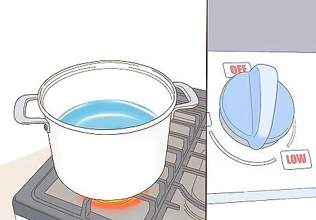 Bring a pot of water to a low boil. Fill a large stockpot about halfway full with tap water. Then, turn on the heat to medium-high and bring the water to a boil. Turn the heat down to low so that the water is just simmering. This will provide plenty of heat to melt the wax. Note that the wax will combine with the water as it melts, but they will separate again as the wax and water cool.