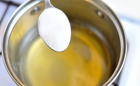 Mix in the sugar. Once the gelatin is dissolved, add 3 tablespoons (38 g) of sugar to the saucepan. Whisk the mixture to fully combine the ingredients.