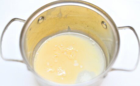 Combine the water and condensed milk. Add 1 cup (237 ml) of water and 3 tablespoons (57 g) of sweetened condensed milk to a separate medium saucepan. Mix the two together well so they’re fully combined.