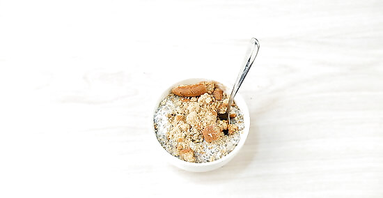 Add peanut butter and cookie crumbs to make a sweet treat. Mix 1-2 tbsp (20-40 g) of peanut butter into the basic pudding after you mix the chia seeds and milk together. Crumble 1-2 peanut butter cookies on top of the pudding for serving. You can substitute 1-2 tbsp (20-40 g) of powdered peanut butter for regular peanut butter if you want.