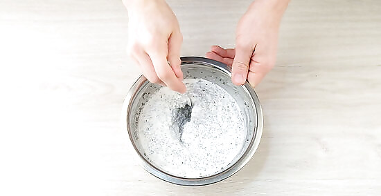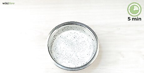 Let the mixture sit for 5 minutes until it thickens. Leave the bowl or jar on the counter at room temperature once all the ingredients are well-combined. Check the consistency of the mixture after 5 minutes. Let the mixture sit for 10 minutes if it is still mostly liquid after only 5. It should start to thicken a bit before you give it a final stir and refrigerate it.