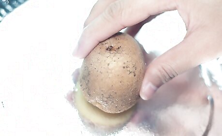 Choose your potato and cut it in half. Rinse and dry the potato.