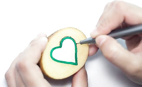 Draw (or trace) a design onto the flat, cut inside part of a potato half. We will use a heart as an example. Draw a simple heart or cut one from paper and trace it onto the potato.