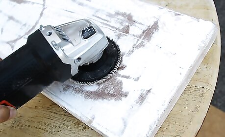 Grab a sandpaper or better yet a grinder to smooth the surface of the plank.